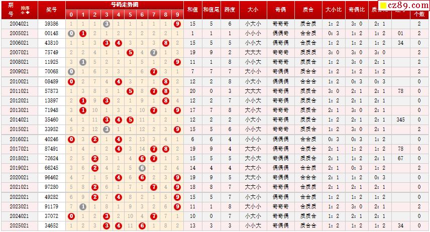第021期体彩P3历史同期对比